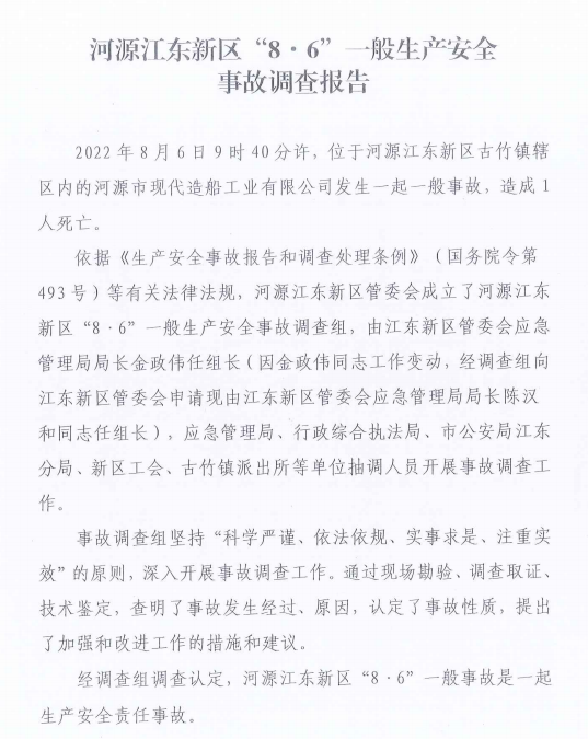 河源江東新區(qū)“8·6”一般生產(chǎn)安全事故報告